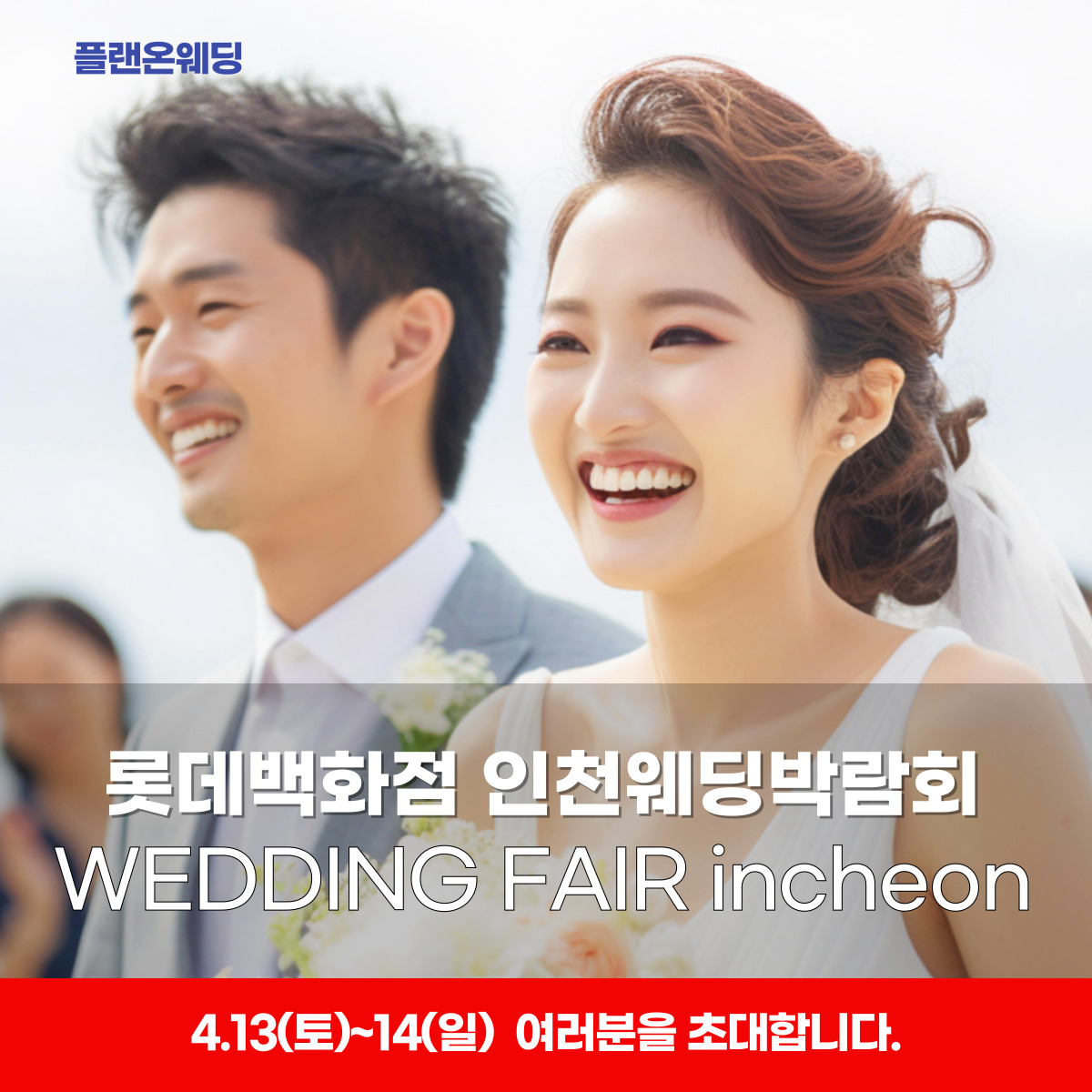 4월13일~14일 단2일간 롯데백화점 인천웨딩박람회 스드메초특가 한복,예복,예물, 신혼여행박람회 동시개최